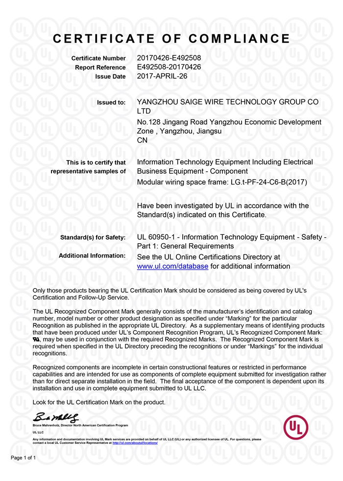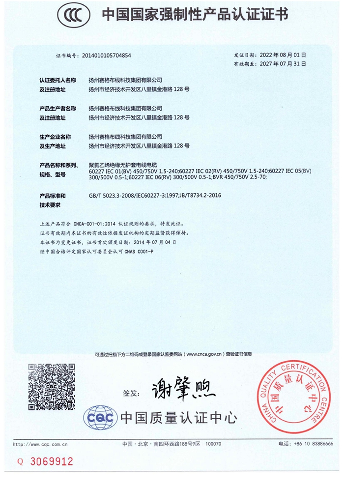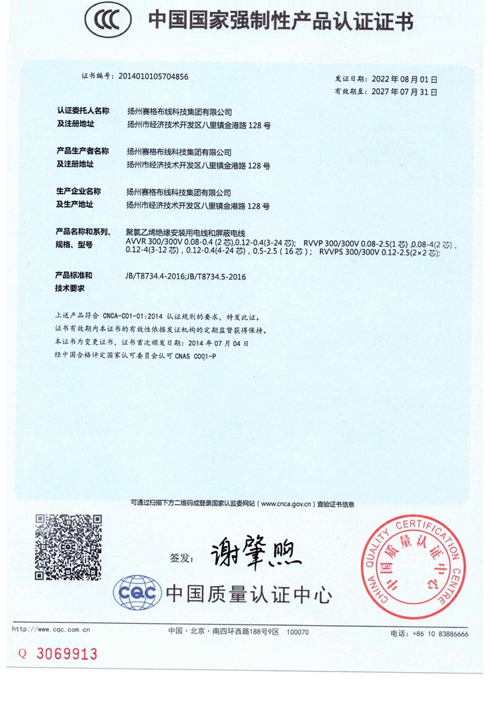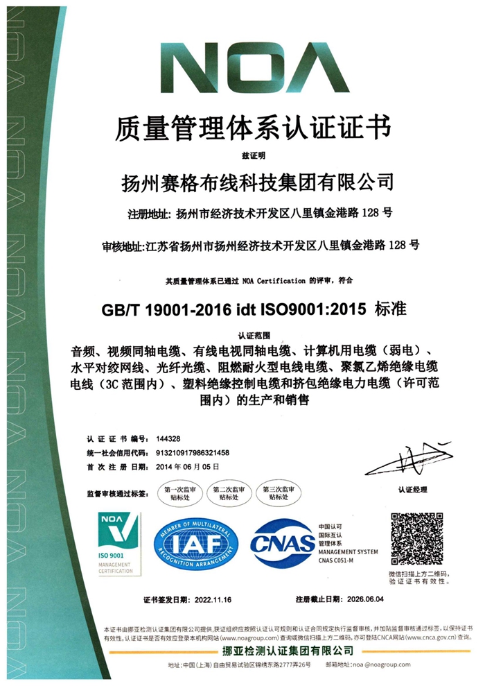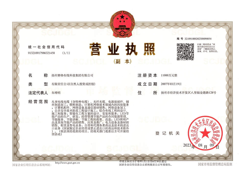 “賽格集團(tuán)”位于美麗的揚州,公司占地面積106800平方米,固定資產(chǎn)20000萬元,職工近千人,其中各類專業(yè)技術(shù)人員過百人,系中國安全防范產(chǎn)品行業(yè)協(xié)會理事單位。公司擁有各種先進(jìn)的綜合布線產(chǎn)品及線纜制造和實驗檢測設(shè)備,產(chǎn)品嚴(yán)格按照國家標(biāo)準(zhǔn)或行業(yè)標(biāo)準(zhǔn)組織生產(chǎn),并已獲得國家質(zhì)量認(rèn)證中心CQC頒發(fā)的CCC證書和上海挪亞檢測認(rèn)證集團(tuán)有限公司頒發(fā)的ISO9001:2015證書,泰爾認(rèn)證中心頒發(fā)的“泰爾認(rèn)證”等!